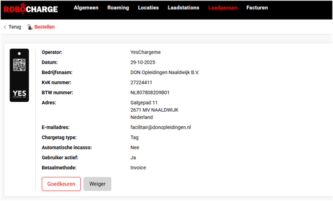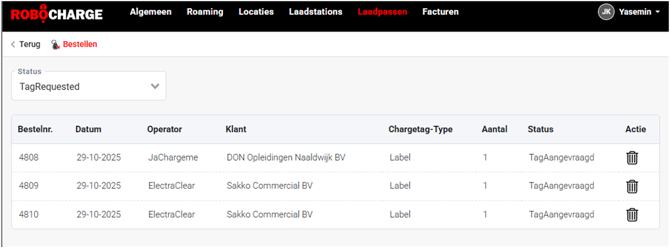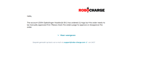 1. Als een klant via het portaal een laad tag aanvraagt, word onderstaande mail verstuurd naar onze inbox.