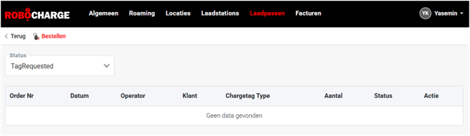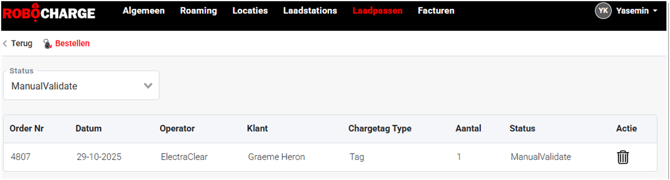 3. Druk op bestellen en je komt in onderstaande afbeelding. Je hebt 2 opties TagRequested en ManualValidate. Bij ManualValidate zijn de tags die nog gekeurd moeten worden en TagRequested zijn de tags die al gekeurd zijn en opgestuurd kunnen worden.